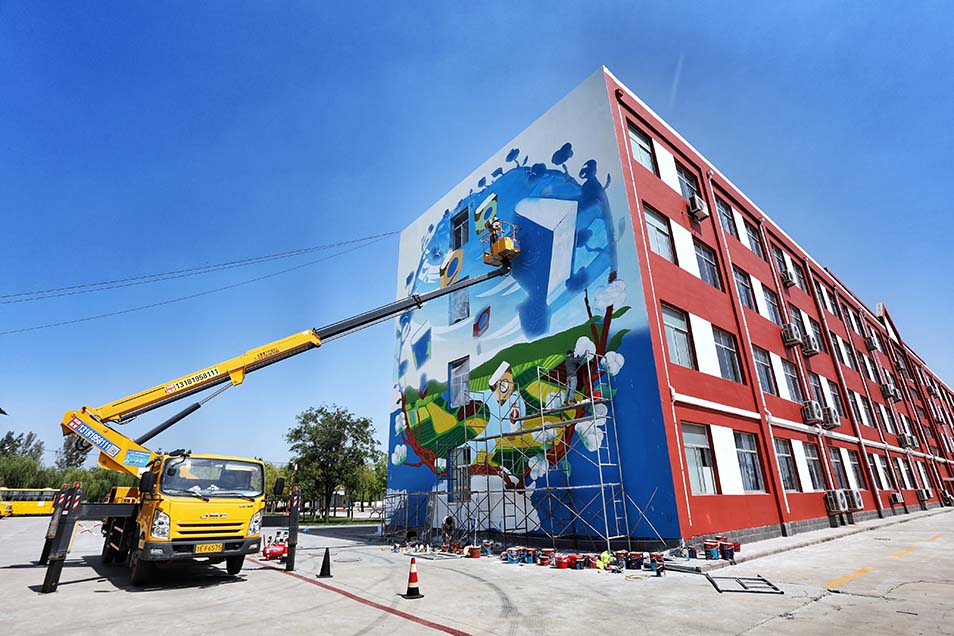 隱上設計非常榮興能受邀參與本計畫,透過「為愛上色」如此具有生命重量的公益活動,除了美化校園之外,更希望能夠給予孩童更美好的未來想像。黃士華設計師提出「山遊」的彩繪主題,傳達土地與知識的力量,山的概念融合了二種意義:濱州的自然資源—畜牧與棉花,以及濱州的人文教育—位於山區的京博小學。學校擁有得天獨厚的自然環境,在傳授孩童知識的過程中,也希望讓孩童永遠有探索不完的未知與新奇感。