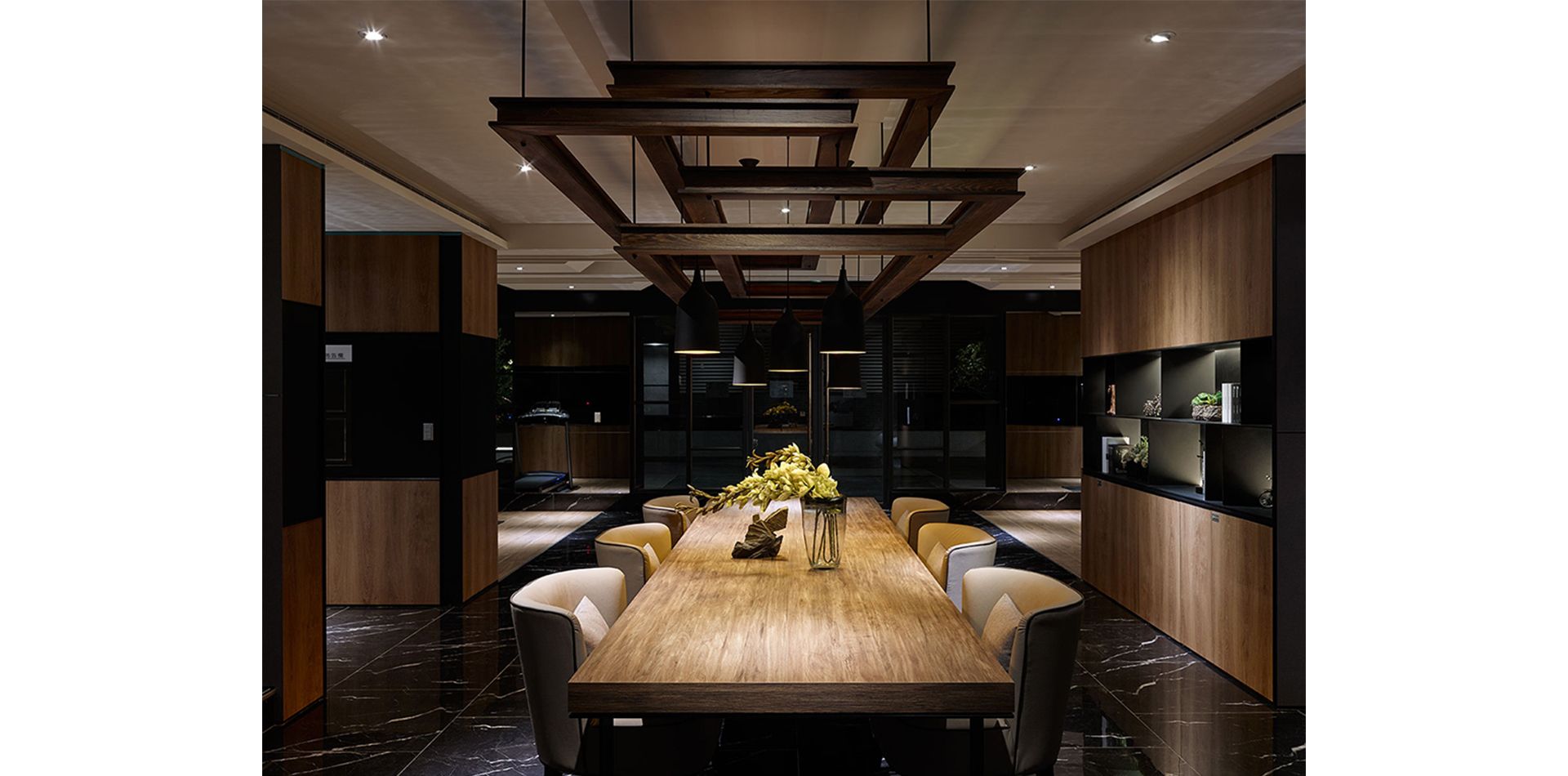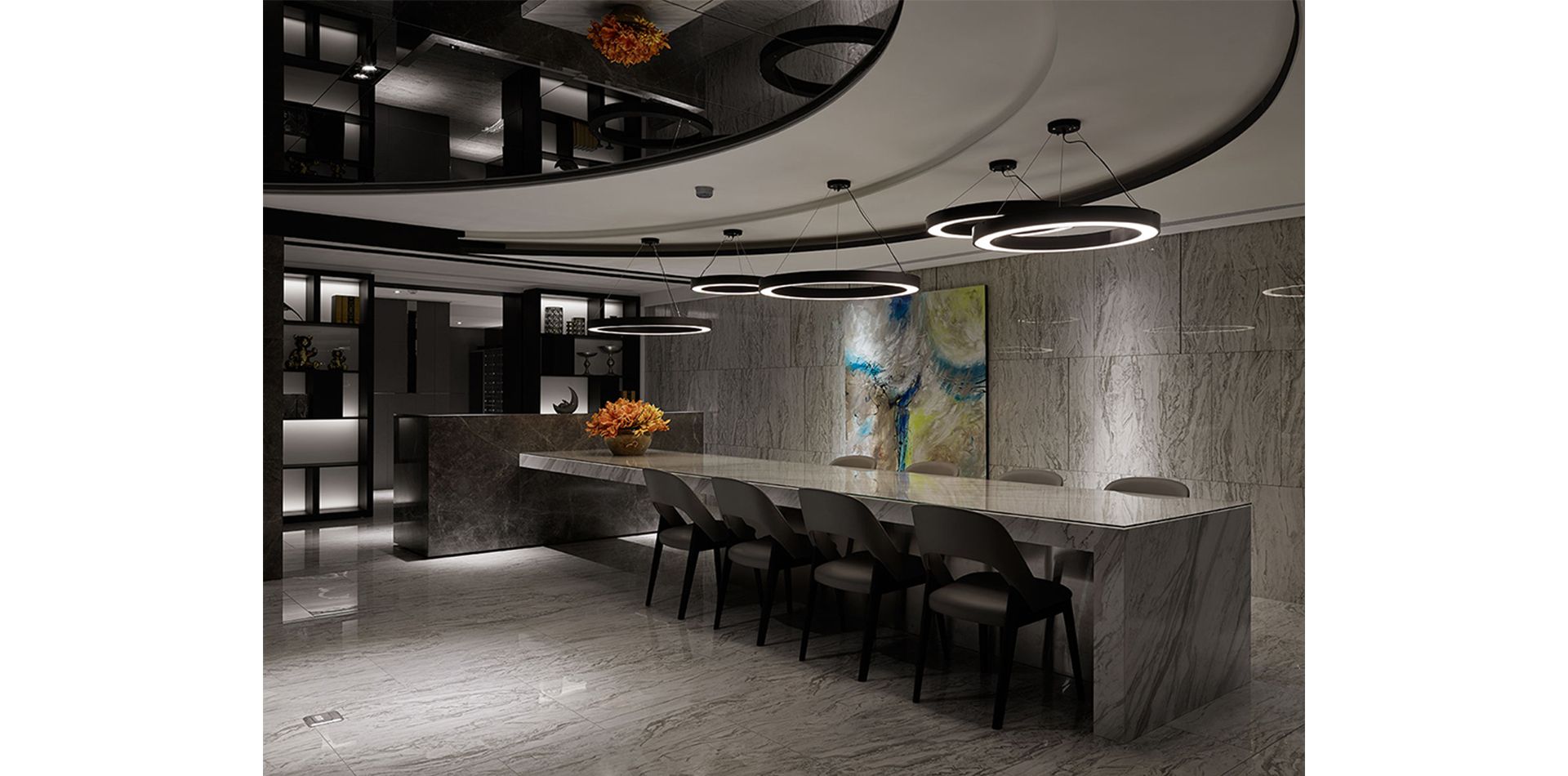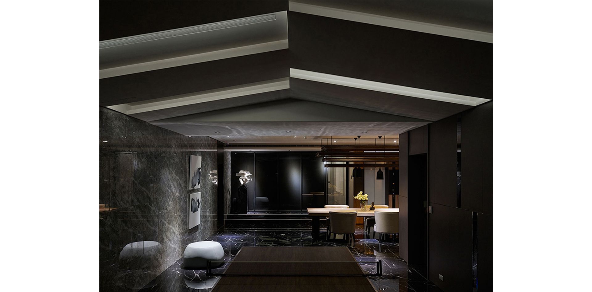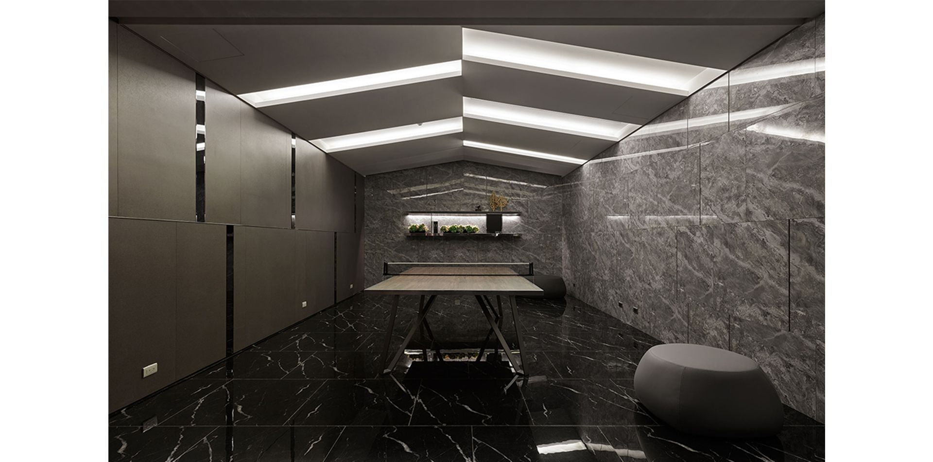 黑砂紋面黑鐵、灰鏡、黑色髮絲紋面鍍鈦金屬板、銀狐理石、咖啡絨理石、黑雲石、麻布紋皮料、橡木實木皮、仿舊橡木紋磚、灰黑織紋波隆地毯