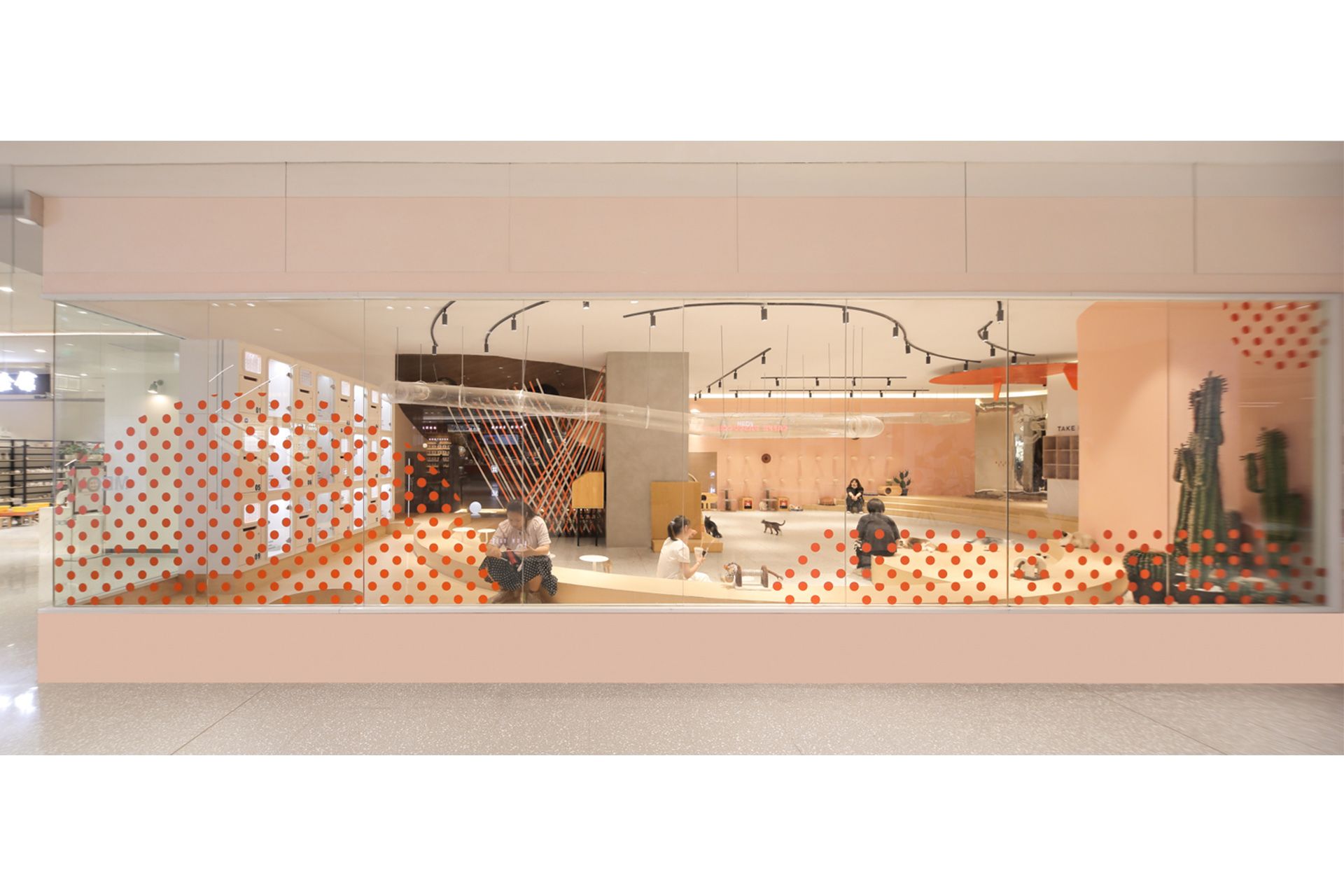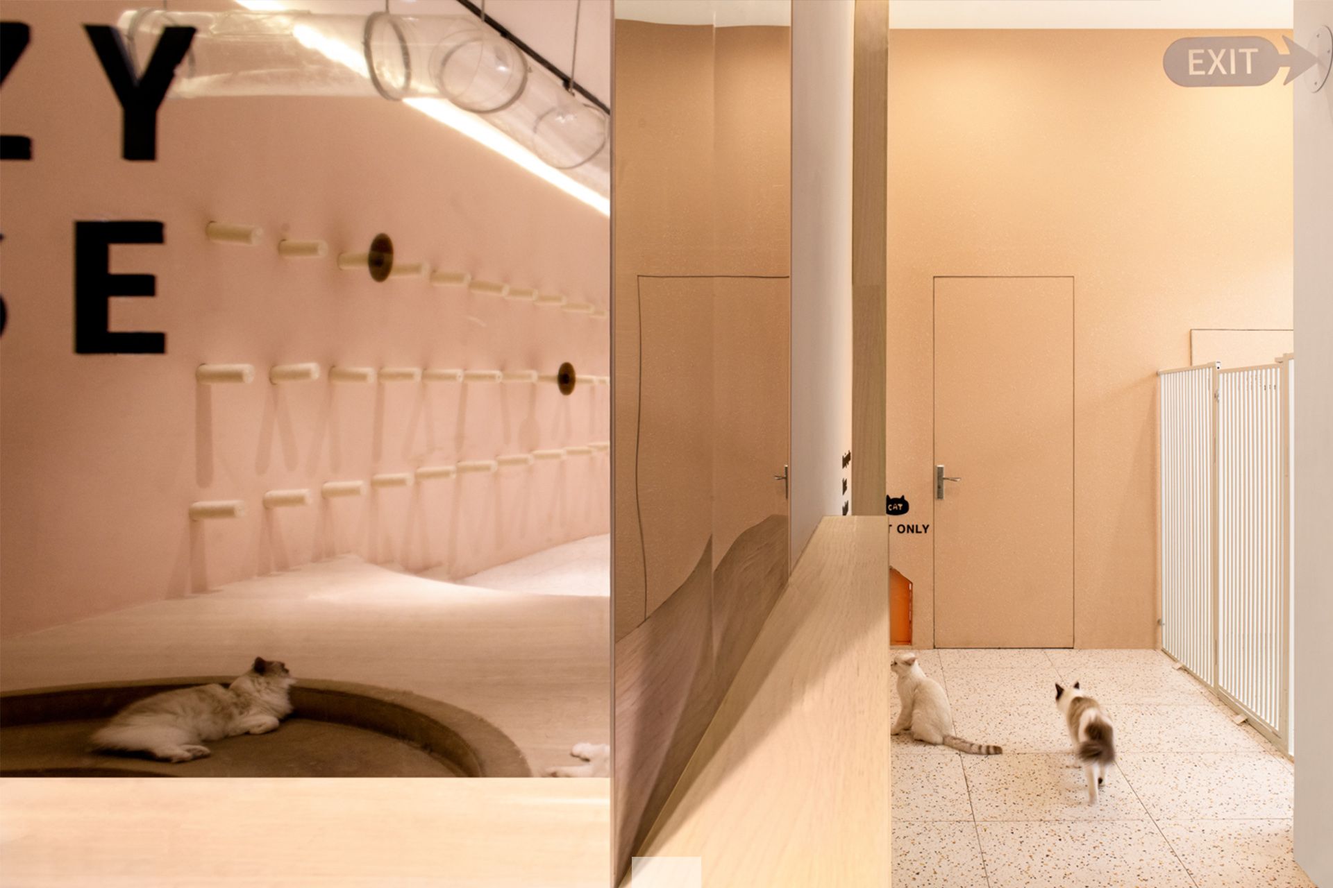 使用者的體驗在於與貓的互動,抬頭仰望透明管道,可見毛茸茸的貓與貓掌,形成療癒視覺,地面起伏的地板增加人與貓的互動,爬架區則是貓的運動區。