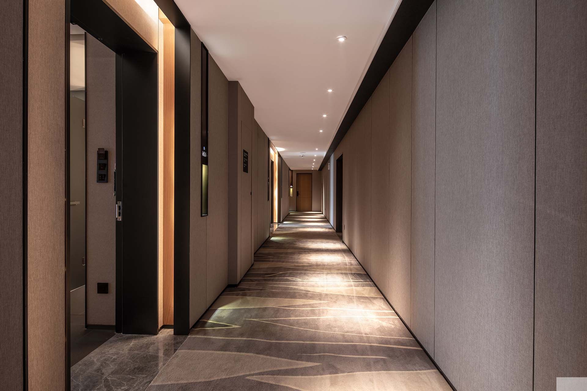 優逸酒店原為傳統老舊酒店,即有的客房狹小壅擠,動線混亂,同時存在辦公機構,採光不良,因此在原有品牌概念上進行創新,以顧客舒適為前提進行酒店品牌改造,進而提升品牌價值。 設計概念源自於中國道的哲學,透過理解道的本質,尋得心靈上的自由,將理解自我、存在、與宇宙三者關系體現於此空間裏,建築空間裏的格局、動線、場景,不強調造型風格,而是以空間層次去呈現道的本質,創造自然的場景呈現靜謐與樸實無華的存在。 自然的二元素光與木交織構築出自身所理解的宇宙觀。宇宙存在中的微光概念,從中庭室內景觀區為核心擴散,白天日光緩緩流瀉,內中庭場域讓B區客房得到室外光景,改善了采光不足的問題;夜晚則轉化為繁星摺摺的夜空場景,三五好友聚集在此聊天舒心,同時作為兩個電梯之間的主要動線,構成景觀電梯,隨著電梯緩緩上升,像是飄浮進入浩瀚星塵之中,側邊墻面上運用木格柵隱藏消防管與建築結構。 木的溫潤以及內斂的質地,將酒店各個不同功能的空間,建構出一道和諧的動線。入口使用大量的木格柵,重新定義酒店的品牌調性,透過內退空間與樓梯景觀,重新整理入口關系,也提高整體的舒適度。大堂與餐廳木架構天花參考中式古代建築樑架的的技術,運用美學手法將其簡化,透過裸露骨架與天花的搭配,形成一股寧靜的對比;大堂設有自助用餐區域,客人可自主選擇飲品與點心。書吧同樣以木為基底,搭配水墨暈染效果的窗簾,使光線穿透山水進入木場域,使兼具大堂吧、圖書館、商務洽談與休閒功能的書吧,展現更柔和的氛圍。 客房回歸到休憩的本質,低密度的裝修呈現原木更原始樸質的面貌,期望客人能在此找回最放松的時刻。另外考慮到年輕族群非常喜愛在家中裝設大投影幕欣賞電影,因此客房也融入家庭小劇院的概念,同時打造如同在家一般的舒適,以及在酒店空間的精致享受。